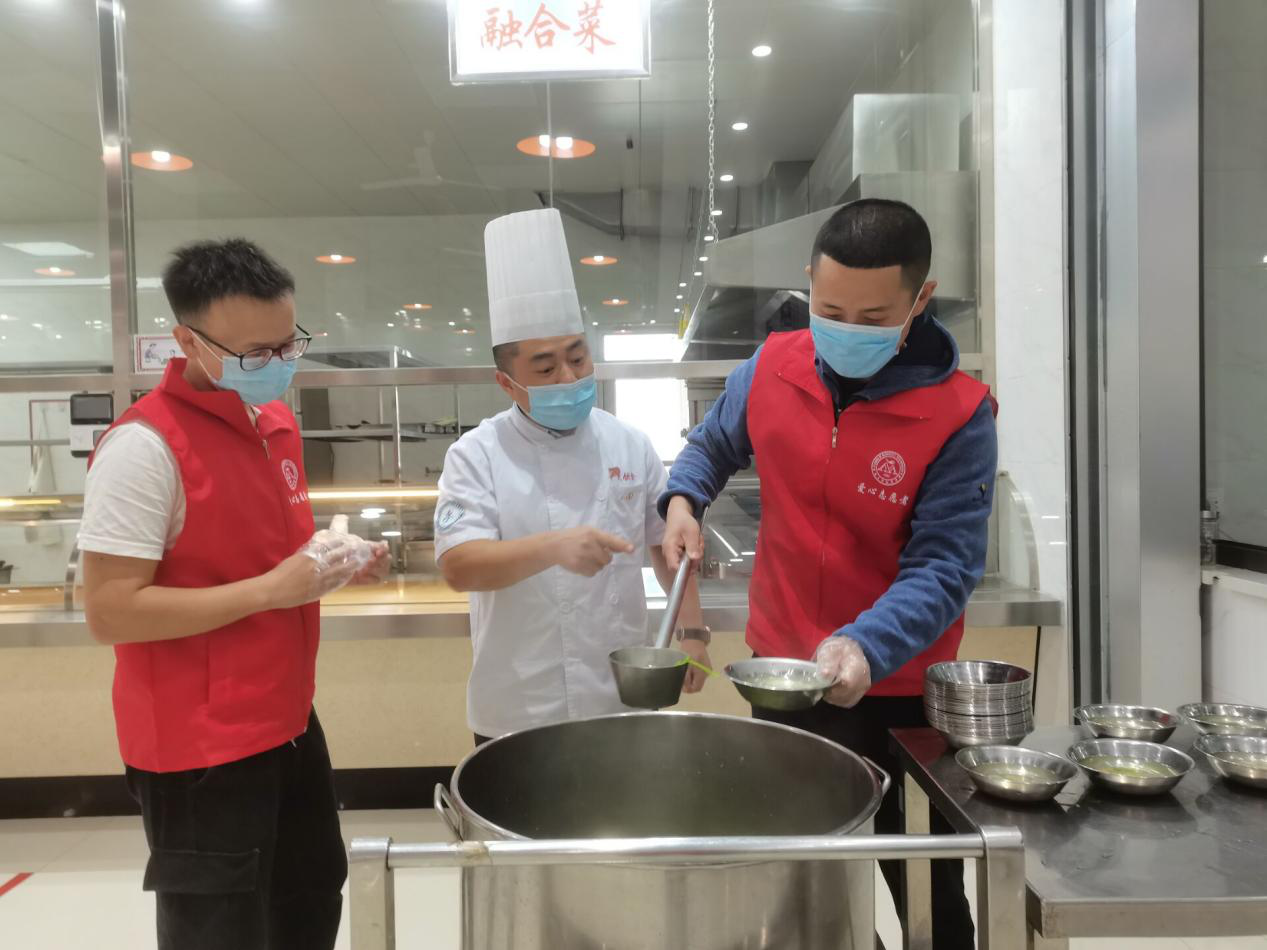 在莘子园,志愿者们首先跟随工作人员张哥参观了后厨的构造、了解了菜品的制作、准备了午饭所需要的食材,这样才算为午餐供应的顺利进行做好了充足的准备。午饭期间,志愿者们参与了打饭,打汤和清理桌面的工作。
