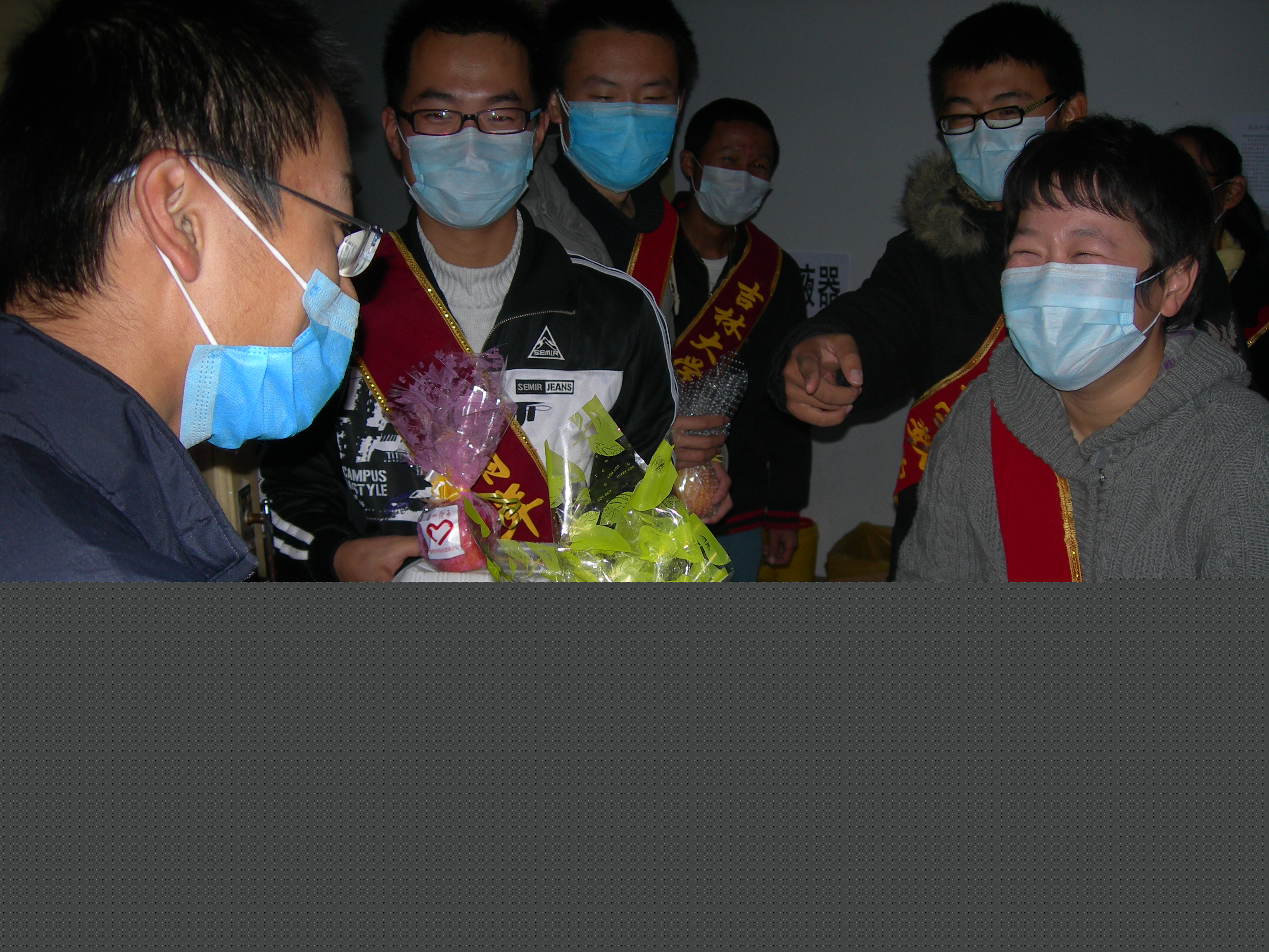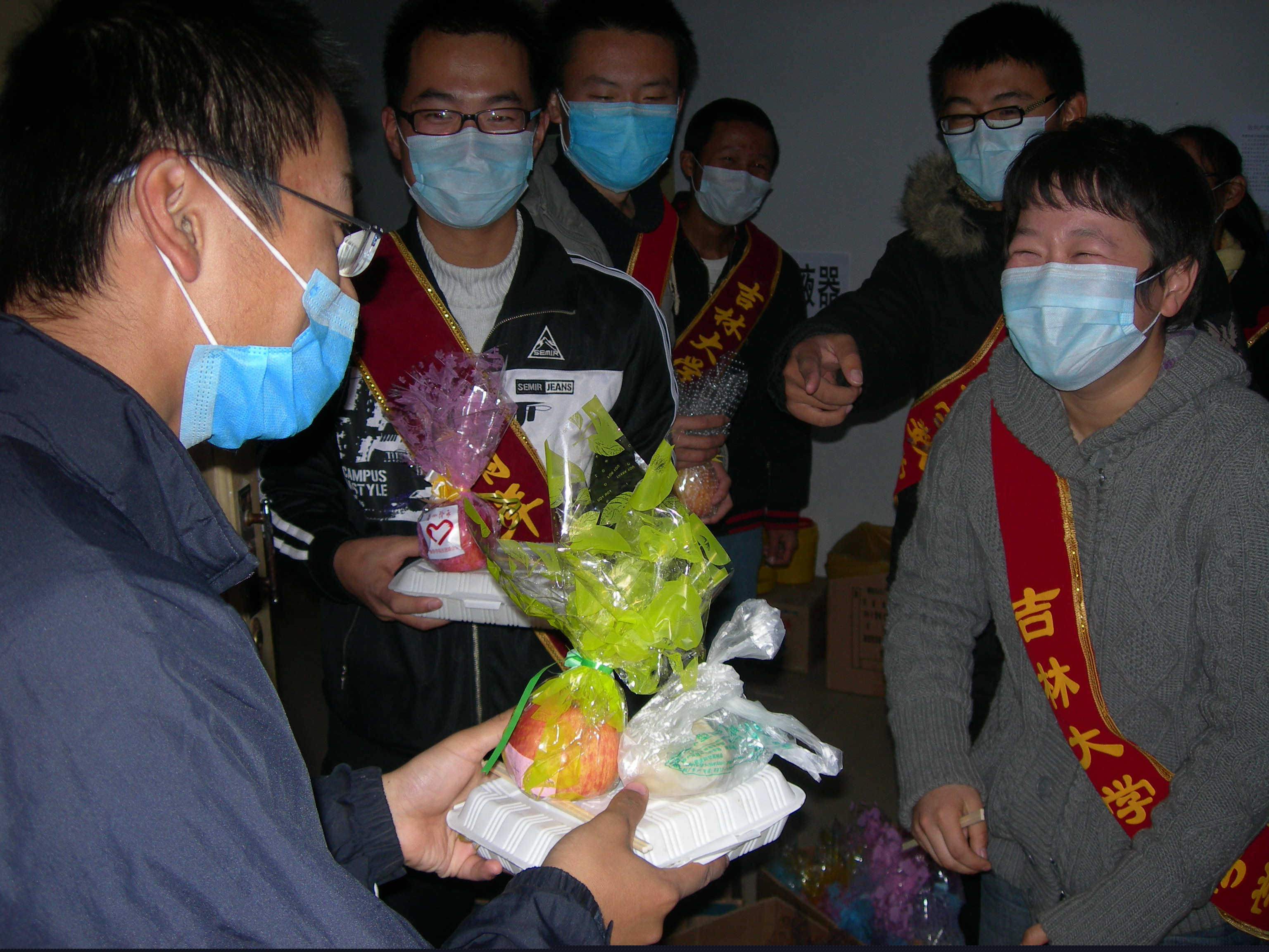 由于近期甲流在全国肆虐,365英国上市公司爱心阶承青年志愿者协会在校团委抗击甲流的号召下,组织志愿者们将一个个精心包装的爱心苹果送到了大学城的被隔离者以及医护人员手中。