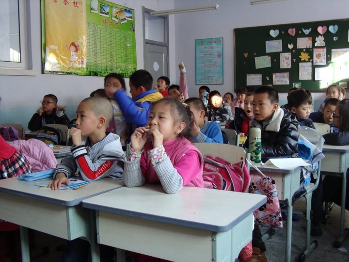 第五阶段(2月26日):在松原市长岭县巨宝山镇中心小学深入调查研究小员工对十八大精神的了解情况,通过发放宣传材料,举办图片展向小员工传达党的十八大精神中关于创新,减负的思想。通过与小员工的交流沟通深入了解他们的思想,让他们对国家政策方针有所认识。