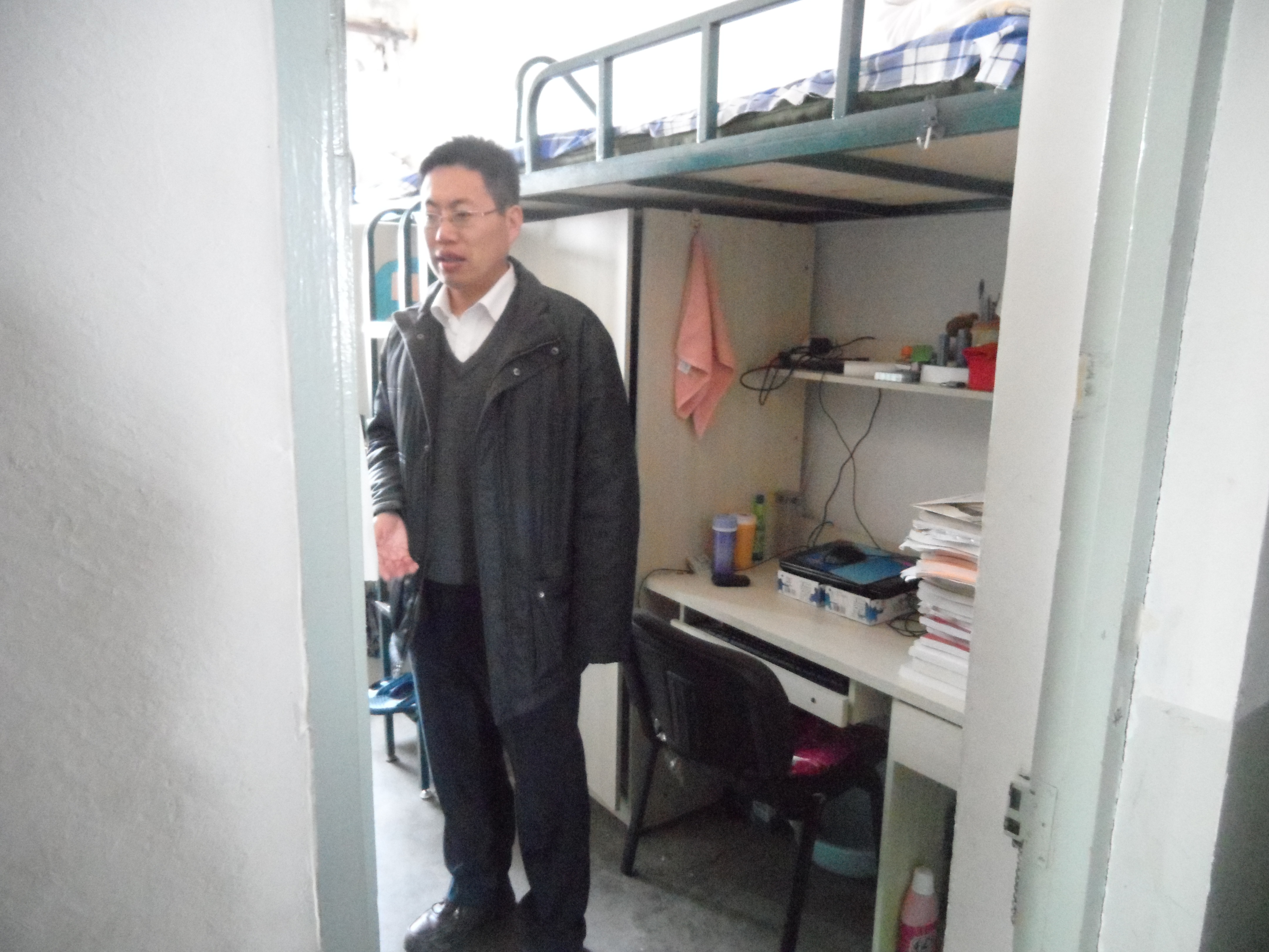 活动从文苑一舍开始,通过南苑和经信,最后在大学城结束。在活动进行期间,赵老师以及三位辅导员老师首先与各寝室员工就学习、生活等方面进行了亲切的交谈并表达对员工的关爱,在查看了各员工寝室的实际状况后,对各员工寝室做了一些点评并就寝室环境卫生问题提出了一些改善的方法,强调防范安全防火隐患,杜绝违章用电行为。还统计了顶层漏水、墙壁发潮等情况,向公司有关部门上报。