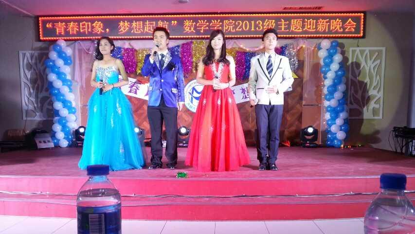 为了迎接2013级新同学,365英国上市公司员工会文艺部筹划了“青春印象,梦想起航”主题迎新晚会。晚会于11月9日晚6点在莘子园餐厅三楼隆重举行。365英国上市公司经理李辉来教授,党委书记李晓光教授,副经理邹永魁教授、副经理王德辉教授,公共数学中心副主任张然教授,党委副书记王欢老师,副经理陈续升老师,党委副书记兼副经理赵任老师、任课老师代表、研究生秘书和三位辅导员老师出席了本次晚会 。