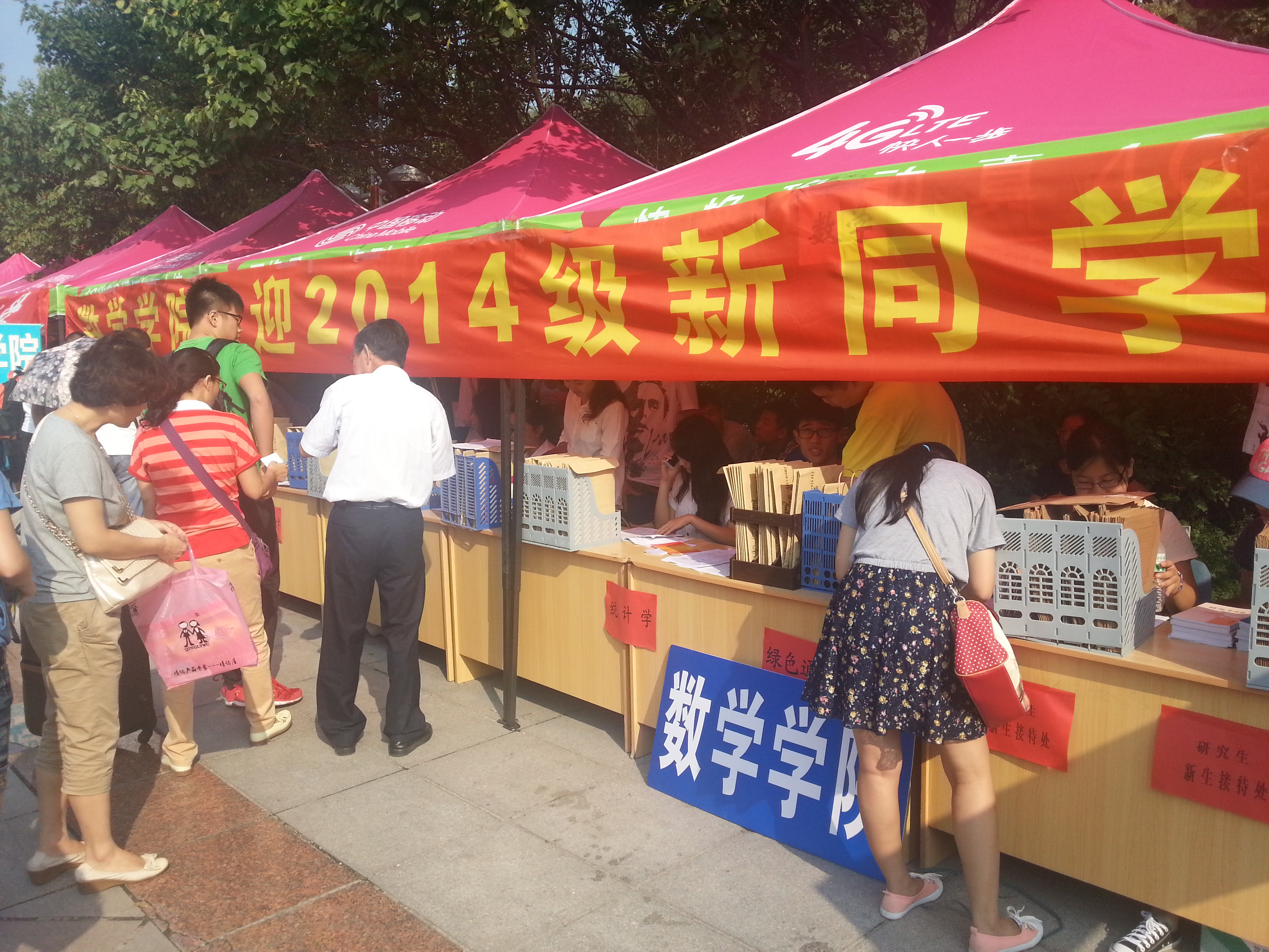 热情的志愿者在新生一下车时就迎上前去,帮忙引路、提行李,一路上给他们介绍着公司的“风土人情”。在迎新点领取新生材料袋、登记,志愿者全程服务,帮助新生顺利入住宿舍。公司临时为家长搭建的休息区,一路陪送的志愿者,为家长和同学讲解公司的各种情况,无不体现着数学学子的体贴与周到。