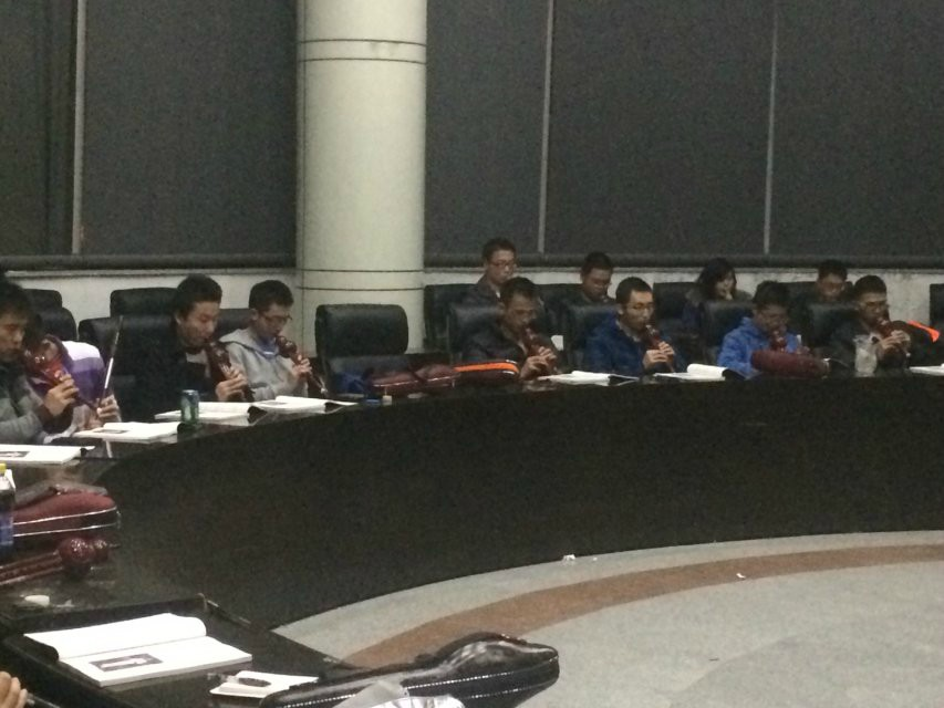 授课开始后,刘驰学长首先讲解了葫芦丝的构造,并为学员们纠正了吹奏葫芦丝的姿势,随后,刘驰学长为大家用巴乌演奏了一段精彩的《神话》,图为在场众学员全神贯注地倾听。经过一番详细讲解之后,学员们开始了自由练习,乐声四溢,数学楼一时热闹非凡。学员中甚至有一位老人家,其它学员练习时,刘驰学长单独地为她进行了耐心的讲解。老人家对葫芦丝的热爱和执着令人不禁心生敬佩。
