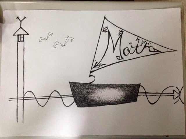 计算三班的班徽主体是一艘正乘风破浪的船,帆上飘扬着写有“Math”数学的旗帜,船下的浪花由正弦函数图像组成,旁边是坐标轴,y轴上方有形如字母y的风向标,下方是灯塔。班徽的总体想表达的是遨游在数学之海的数院孩子们无论遇到再大风浪,都会不惧困难,逆流而上,都会团结一致,风雨同舟,愿每个数院人为梦想乘风破浪,扬帆起航!