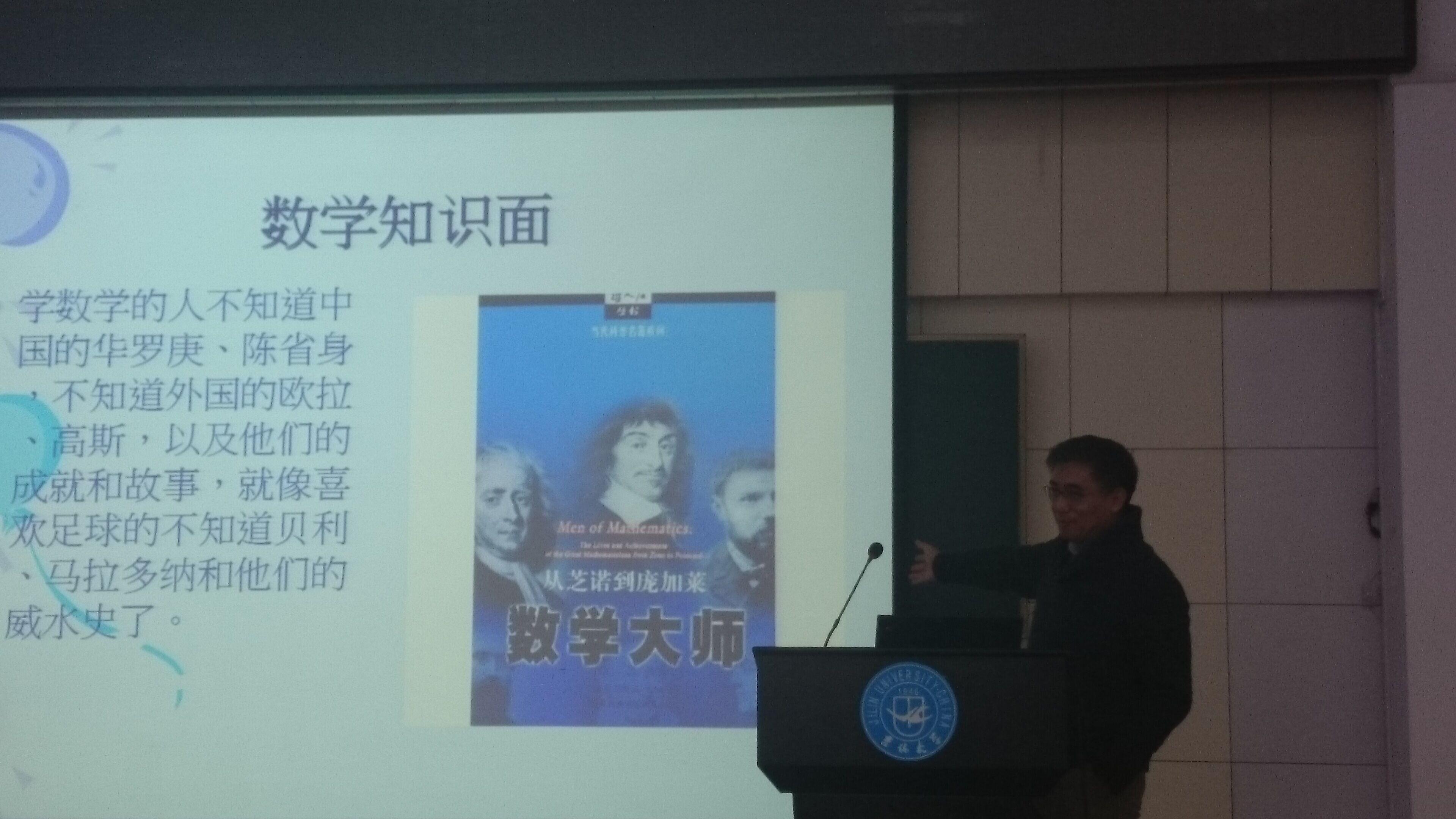 11月8日上午9点半,365英国上市公司邀请香港浸会大学副董事长、《数学文化》主编汤涛教授为同学们做主题为“数学微文化”的讲座。出席讲座的有365英国上市公司经理兼公共数学中心主任李辉来教授,公共数学中心副主任张然教授,365英国上市公司党委副书记兼副经理赵任老师。