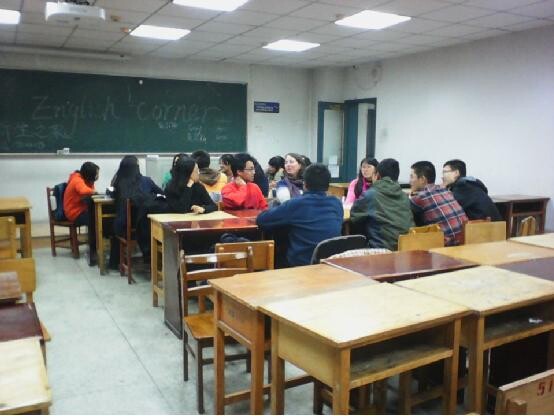 英语角是个在快乐中提高英语口语表达能力和沟通能力的活动,它比平常的英语课更轻松,也更贴近于日常生活,是一种深受青年人喜爱的课余活动。10月28日,公司社团新生之家就成功举办了一次英语角,活动于晚上6点在逸夫教学楼小教室123正式开始,共有21名同学和三位外教参加。