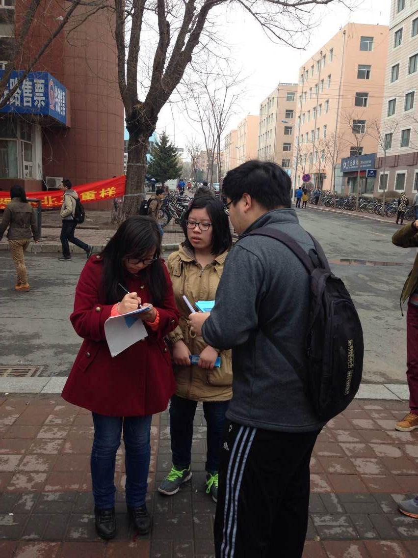 4月3日中午,志愿者在体育馆北门发放了关于自闭症的宣传手册,向同学们介绍有关自闭症的知识,并登记了愿意当此方面志愿者同学的联系方式(手机号、QQ号)。同学们表现出很高的热情。
