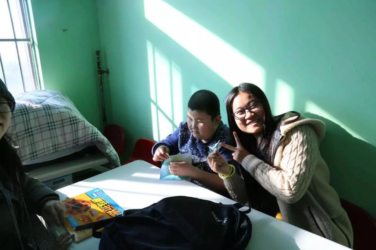 志愿者们早上八点十分在北门乘校车准备出发,达到目的地后,每两人和一个孩子组成一组。每位志愿者都给孩子们准备了折纸,画笔,拼图,零食等礼物,孩子们十分喜欢收到的礼物。志愿者们有的和孩子聊天,有的和孩子们一起做游戏,相处十分融洽,孩子们也沉浸在温暖的氛围中满脸笑容。志愿者还为孩子们准备了小节目,孩子们玩得很开心,他们的笑容比阳光还要灿烂。
