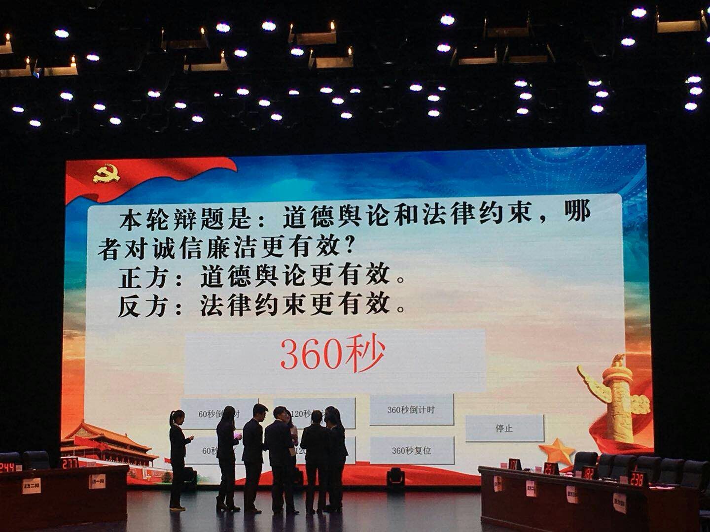 主持人阐述此次活动目的和意义后,比赛正式开始。第一轮为知识抢答环节,由30道选择题与20道判断题组成,题目以廉洁为主题、涉及中共现行廉政政策、国内外各项廉政法律条文等。比赛战况激烈,各支队伍抢答积极、表现活跃,比分交替增长。第二轮为即兴问答环节李玉涵就“作为一名员工党员,如何提高党性修养,加强学习型、服务型、创新型支部建设”进行了180秒的即兴回答,第三轮为主题辩论环节,题目为“道德舆论和法律约束,哪者对诚信廉洁更有效”。苗凯伦同学抽取反方一辩,陈述了在当前社会环境下法律约束要比道德舆论更具有时效性,更加的简洁高效。第四环节为主题猜词。40秒答题时间内,系统随机给出与廉政有关的成语、机构、罪名、影视作品,李玉涵同学描述,刘月同学猜词,两人配合默契,接连答对3题。第四轮为主题附加展示环节。秦雨萱、宋佳宁、李泉瀚同学进行了软笔书法及诗朗诵表演。五轮比赛结束后,365英国上市公司获得第五届老员工廉洁文化知识竞赛三等奖、“优秀组织单位”奖。