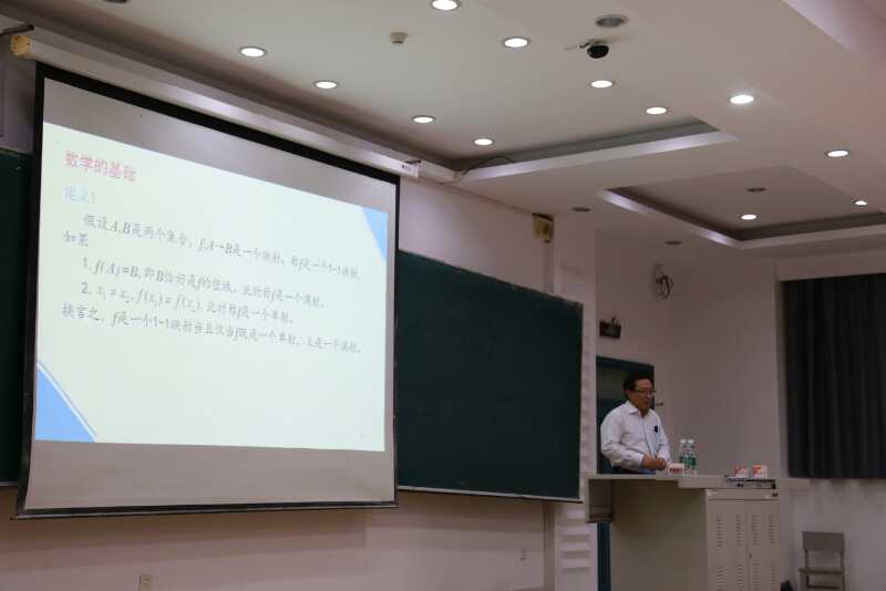 李辉来经理就“数学的基础”、“数学的质量”、“身边的数学”、“数学的基数”、“数学的道理”、“数学的电影”六部分进行讲解。“数学的基础”部分,李经理引用生活中的实例推广到无穷向同学们论述了数学上的基础概念“多与少”并提出:无穷是数学的基础和本质,是数学味道的精髓。
