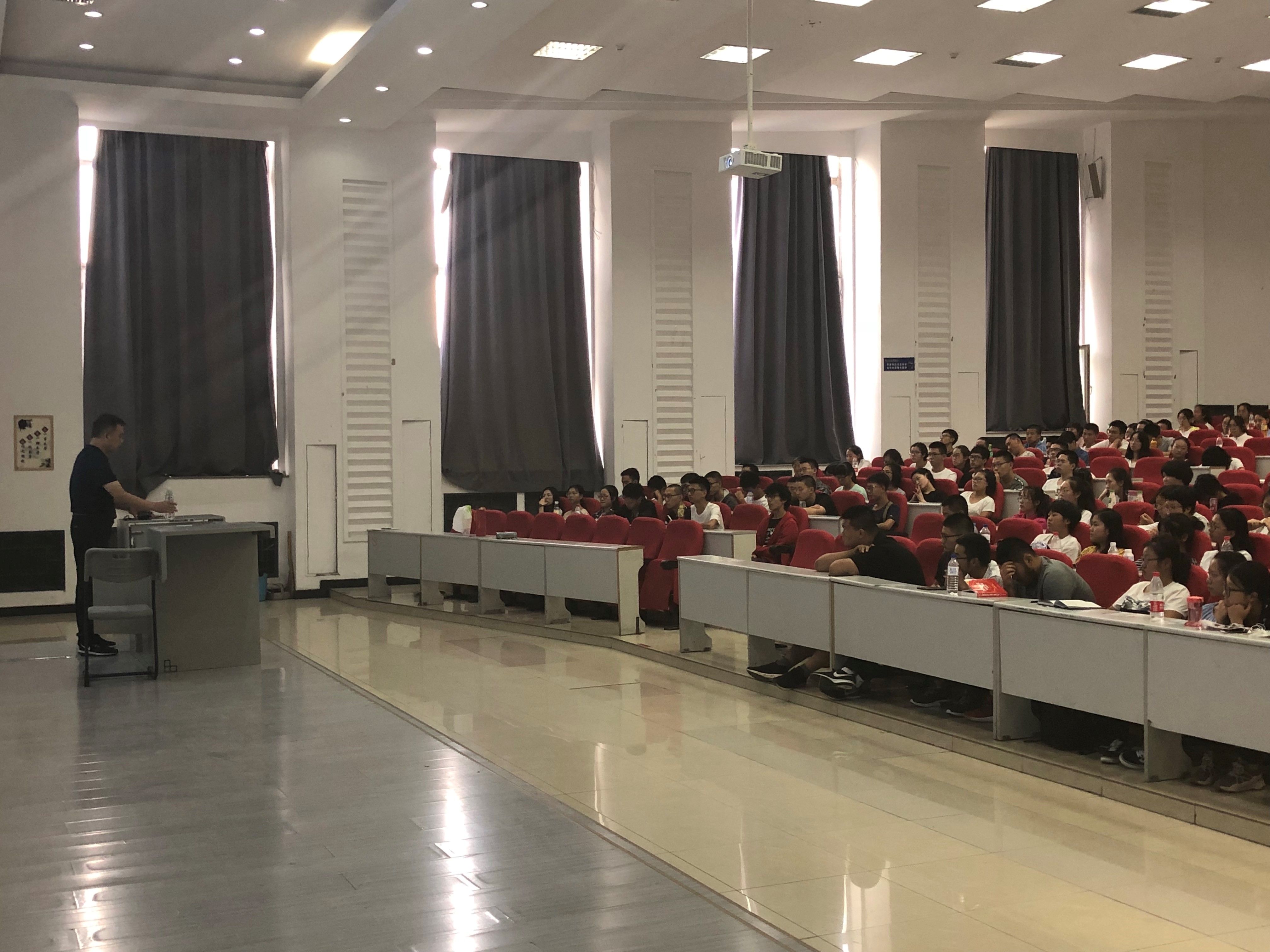 然后,书记引用多位学长的亲身经历,告诉大家学习数学的艰辛,让大家努力学习,不断的争取进步,每天都要努力学习,勇敢面对学习中的困难,希望大家可以用每一天的努力换取自己人生的成功,做一位优秀的吉大数学人。