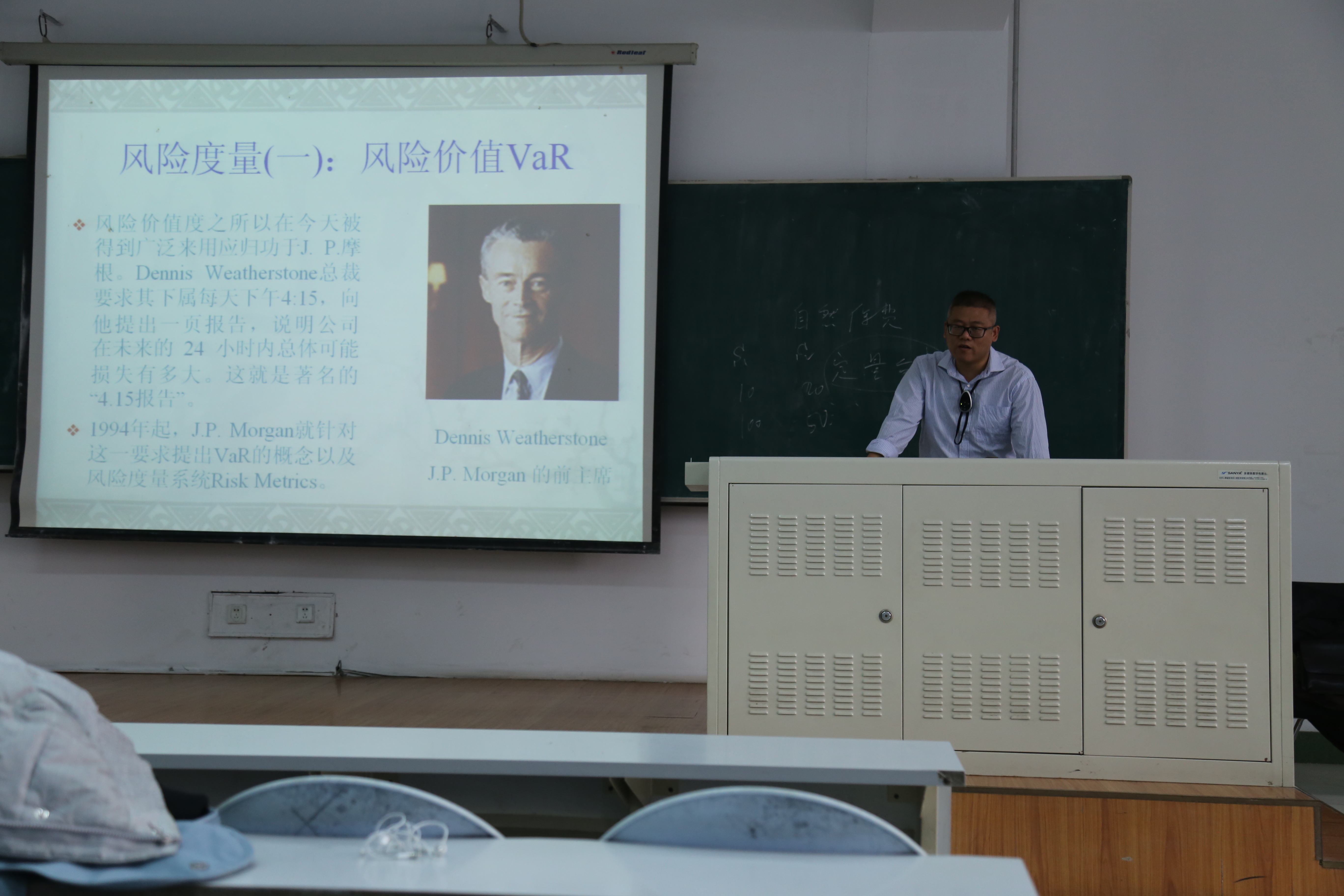 首先,程建华老师引用书中的内容作为讲座的开端,随后讲解了保险精算学的历史以及发展,介绍了有关学科,如:概率统计,随机方程等学科,之后,老师根据寿险和非寿险两种不同的保险分类,分别给出了几种风险类型。程老师语言幽默风趣,不时举出一些生动形象的例子,如股神巴菲特投资可口可乐的故事。最后,程老师还给同学们提出了建议,希望同学们能敢于表达自己不同寻常的看法,并且建议有兴趣的同学努力学好相关基础学科,成为保险精算领域的未来领袖。