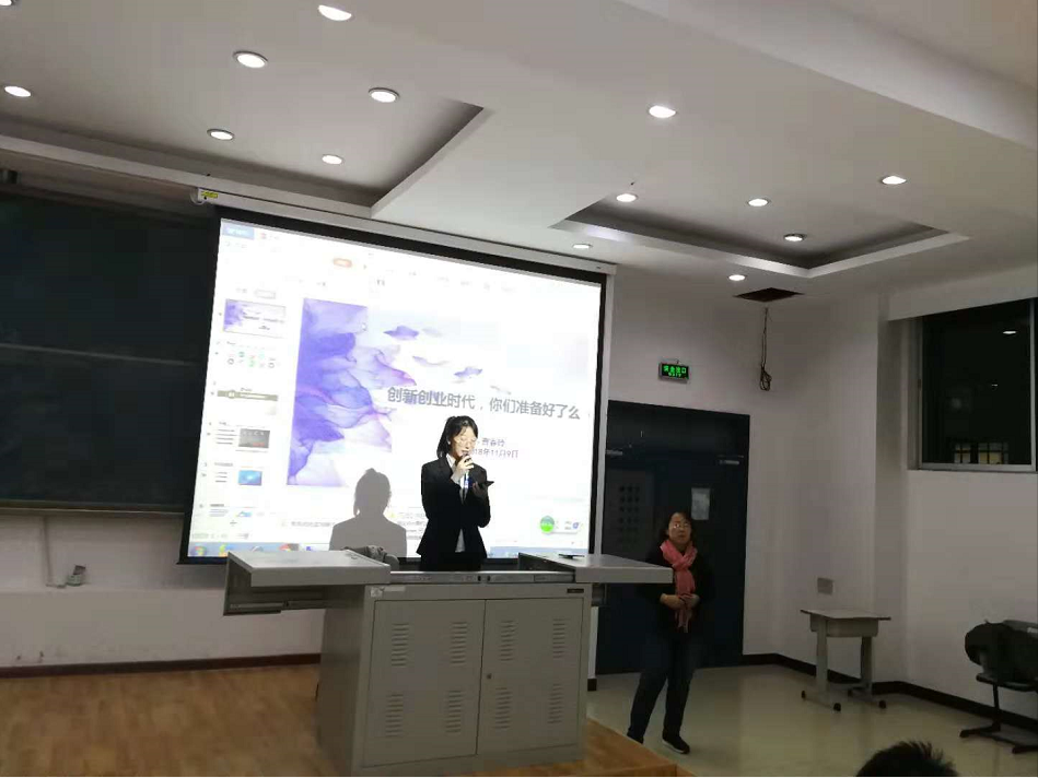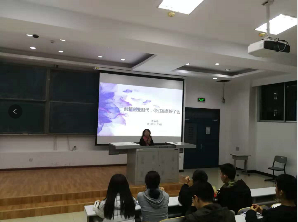 活动以讲座及交流会的形式展开,由各位主讲人从什么是创新创业,面对创新创业我们要做什么,怎样进行创业等多个方面进行演讲介绍。主讲人曹春玲老师详细地为新生讲述了创新创业的优势、创业未来走向以及如何根据自己所学专业选择创业方式等几大要点。将自己所学的创新、创业心得和大家一起交流分享,希望新生能够通过这次讲座有一个新的发展方向,做胆大、心细、有准备的老员工,学会整合对自我有用的创新、创业的信息,增进创新创业的自信力。