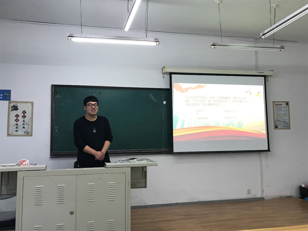 首先,班会简单介绍了一下改革开放的历程。介绍过后,主持人采取了知识竞赛的形式让同学们对讲解的各项内容进行记忆,同学们积极回答,气氛非常轻松愉快,大家在欢声笑语中很快对改革开放有了初步了解。然后,团委办公室趁热打铁又开展了读书会,让大家通过阅读书籍,观看纪录片,实践调研,在改革开放40周年之际,交流了自己心中的改革开放。同学们自行寻找了改革开放相关书籍,以及在改革开放期间中国文学上出现的现象级文学作品进行阅读,深入浅出的交流了这一历史时期国家政策之于人民、之于社会、之于文学界、之于商界的影响。最后,大家对自己的长辈进行采访,从不同的角度感受改革开放,全方位感受改革开放为我们生活带来的好处。