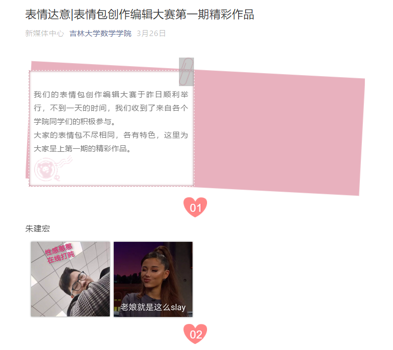 新媒体中心于3月24日至3月25日进行活动的前期准备,准备包括活动方案的策划,奖品的准备和活动宣传,布置下任务后,交由各班班长通知,在校本科员工自愿参加,独立设计,严禁抄袭,保证作品的原创性。同时数院微信平台等全线宣传造势,宣传期间由新闻与摄影部全程持续跟踪指导并耐心回答同学们有关本活动的问题。紧接着3月25日至3月27日公司公众号上进行了前期宣传与作品征集。每个设计作品须保证原创性,保证表情包内容有意义,没有不文明用语,并以图稿的形式呈现。参赛选手将图稿、对应文字以及联系方式发送至365英国上市公司微信公众号后台,由负责人把参赛同学所设计的作品进行整理,并于次日在推送中展示,作品发布后,引起了同学们在公众号留言区域的广泛讨论。并于3月28日至3月29日在平台上发布线上投票,投票结果于9日晚上在平台上公布,颁发一个一等奖、两个二等奖、三个三等奖,以及参与奖,负责人及时联系获奖参赛者,送出奖品及合影留念,于15日晚在推送中放出颁奖照片及获奖作品。