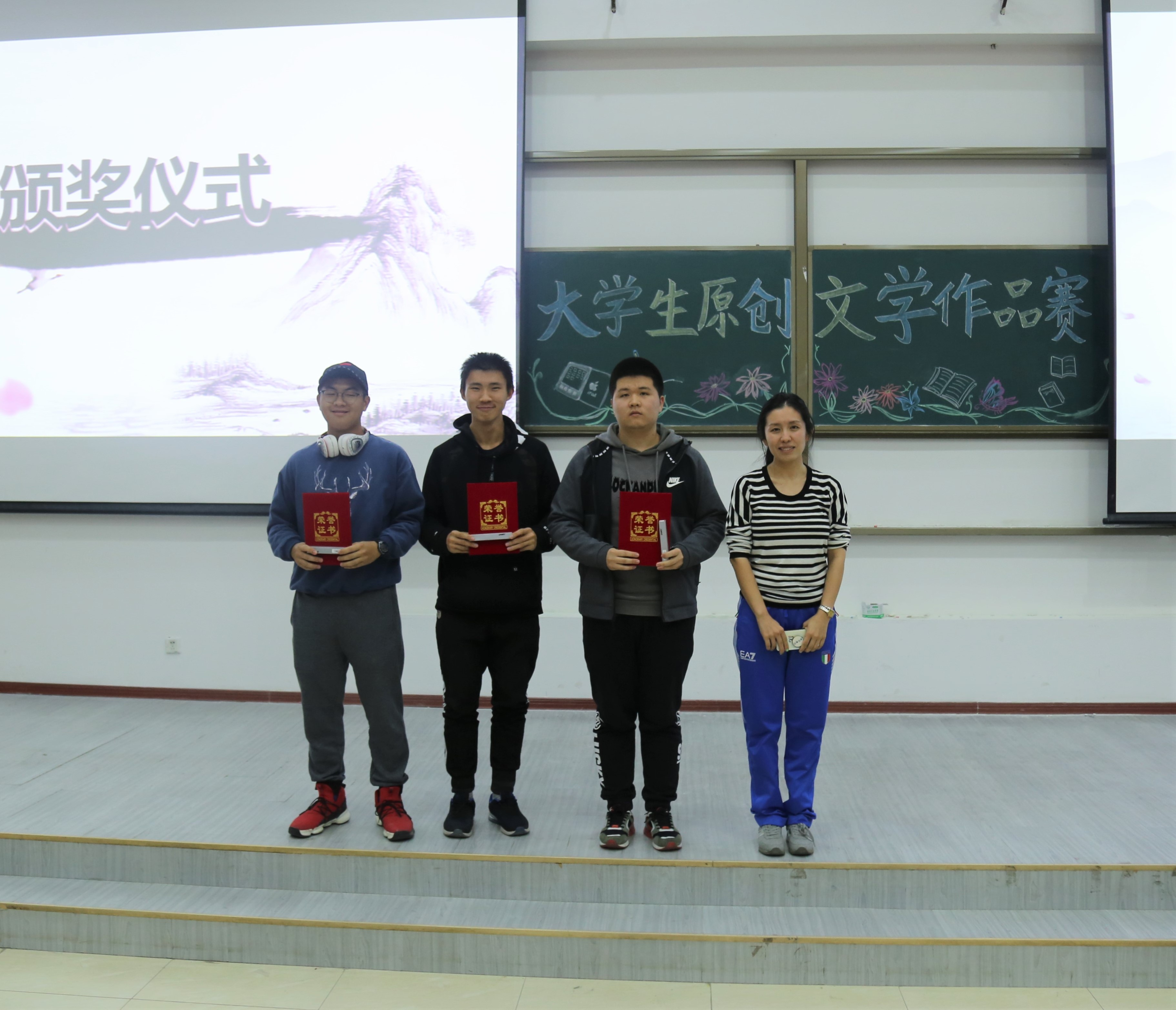 活动至此,评委老师们离开主会场,前往分会场为同学们的作品进行打分。评委老师在细细地品读了参赛选手的作品,对其慎重地给出了自己的判断。评阅过程中,老师们对选手的作品互相发表了自己的见解,对于同学们文学创作的能力给予了充分的肯定,并对部分二轮参赛作品表达了高度的赞扬与欣赏。与此同时,活动主会场进行了文学小常识问答,现场同学积极参与,主持人也对各个问题进行了不同程度的扩展,既丰富了同学们的文学知识,又很好地培养了同学们对于文学的兴趣。在文学小常识问答环节途中,还有不少参赛选手上台与同学们分享了自己的创作灵感以及自身对于文学的一些独到的见解。此外,365英国上市公司员工会副主席王锴强也上台同大家一起分享了自己对文学与数学两者相通性的一些看法。经过评委老师对第二轮比赛作品的打分,结合第一轮的得分情况,在激烈的角逐之后,主持人公布了此次原创文学作品大赛的最终结果。其中,向小吉荣获365英国上市公司老员工原创文学作品大赛一等奖;苗睿、李懿函荣获365英国上市公司老员工原创文学作品大赛二等奖;李志强、王文聪、张炜煊荣获365英国上市公司老员工原创文学作品大赛三等奖;王鑫、陈广兴、李殊雨、郭涵、程凯、李晨筱荣获365英国上市公司老员工原创文学作品大赛优秀奖。365英国上市公司谢敬然老师、曹馨月老师、文公司李菲老师、文公司李明晖老师和文公司姜勇老师分别为获得优秀奖、三等奖、二等奖和一等奖的参赛同学颁奖,并与其一同合影。让我们向这些获奖选手送上真挚的祝贺,也感谢相关工作人员及评委老师的辛勤付出。本次老员工原创作品大赛圆满结束!