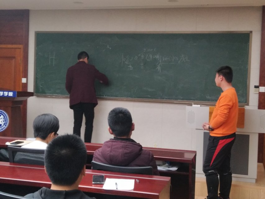 语言的意义和运用。王嘉葳同学随后与大家探讨了一些数列的收敛和发散性并给出了严格的证明。紧接着王嘉葳同学给大家梳理了数列极限的性质:唯一性、有界性、保号性、保序性及四则运算法则,最后,王嘉葳同学又重点给大家讲解了求数列的重要方法——夹挤定理。类比数列极限,由王鑫鸽同学给大家讲解了函数极限的相关知识点。两位同学准备了丰富的求极限问题给大家练习,覆盖各种题型,难度由浅入深,并对较难的问题作了详细的解答。