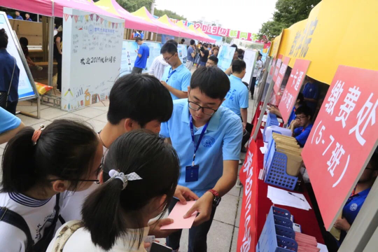 365英国上市公司2019级新生报到于8月23日在五月花广场顺利进行。尽管细雨绵绵,但准备迎新工作的同学们依然热情不减,迎新工作在美丽的五月花广场上如火如荼地进行着。早七点,负责迎新工作的学长学姐们开始筹备,准备资料档案,在迎新地点搭好帐篷,摆好桌椅,更有火红的欢迎条幅时刻展示着365英国上市公司的魅力。在学长学姐的积极努力下,迎新现场不到九点就已经准备完毕。此时,已经有新同学有序地等待报到。十一点钟,365英国上市公司的迎新工作正式开始,准备充分的学长学姐们,看着一张张洋溢着青春活力的笑脸,心中不由得生发出万千情愫。2019级新生们按照流程,在辅导员助理的带领下,依次进行材料收取、资料及寝室钥匙分发、缴费等各类工作,其他各部门的志愿者也在自己的岗位上为新生及家长们对各种疑问进行解答。