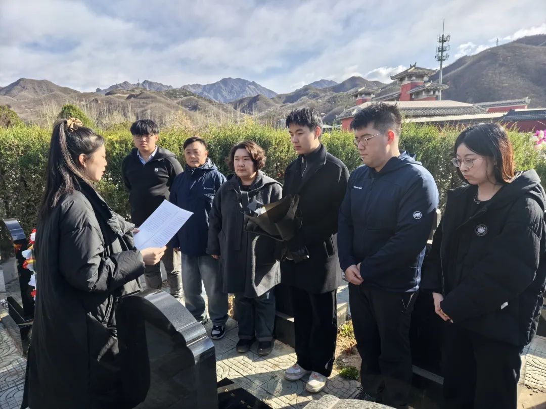 清明节期间,公司师生代表前往北京市昌平区凤凰山陵园,祭扫杰出员工赵悦女士及其父母墓地。公司副经理王浩百、行政综合办公室主任朴素、本科生辅导员戴雨桐作为教师代表、“赵悦奖学金”获得者作为员工代表参加了此次缅怀仪式。