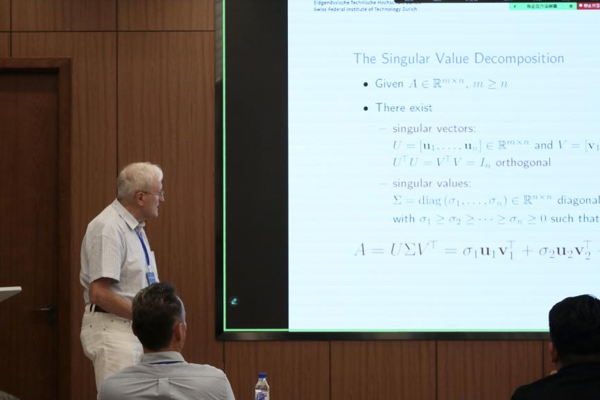 主题报告阶段,来自苏黎世联邦理工公司、勃艮第大学、香港城市大学、上海交通大学等十余所国内外高校及研究所的二十余位专家学者围绕应用数学和机器学习的最新趋势作了精彩的学术报告。报告后,与会专家学者进行了自由讨论,分享最新的研究成果和经验,同时探讨前沿学术进展。