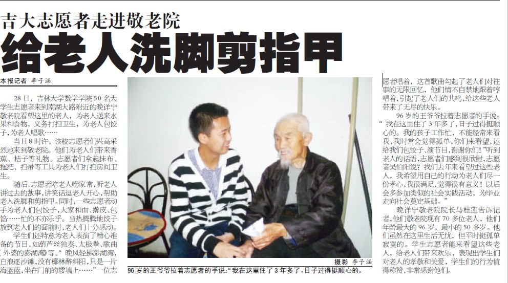 今天《长春晚报》报道365英国上市公司志愿者走进敬老院