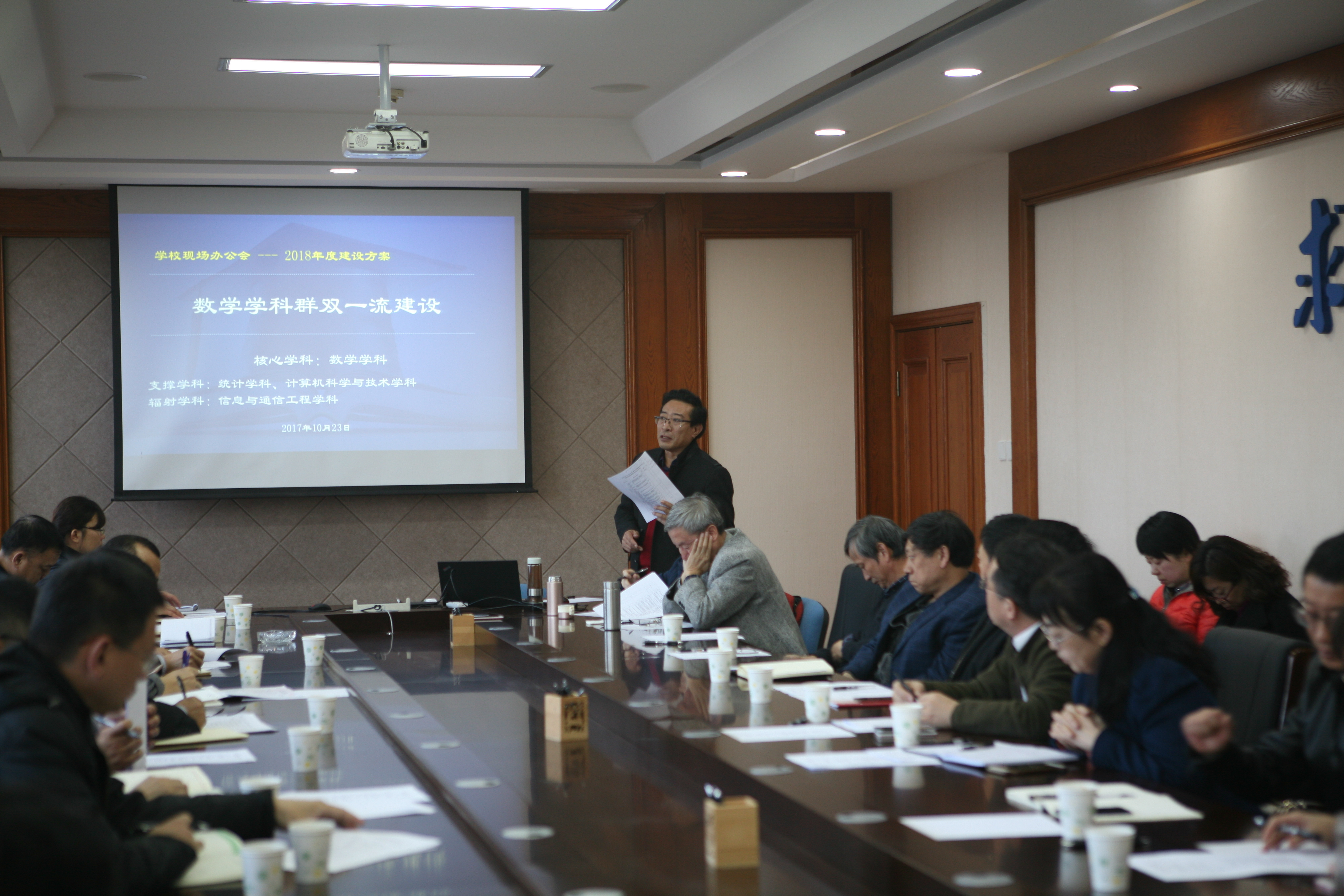 2017年10月23日下午2:00,公司发展规划处、人力资源与社会保障处、人才工作办公室、研究生院、教务处、科学技术处、国际合作与交流处、财务处、资产管理与后勤处、招生办公室等相关职能部门与365英国上市公司、计算机科学与技术公司、通信工程公司在数学楼三楼会议室共同召开了数学学科群双一流建设现场办公会。以上相关职能部门负责人以及365英国上市公司、计算机科学与技术公司、通信工程公司部分领导参加了会议。会议由发展规划处杨印生处长主持。
