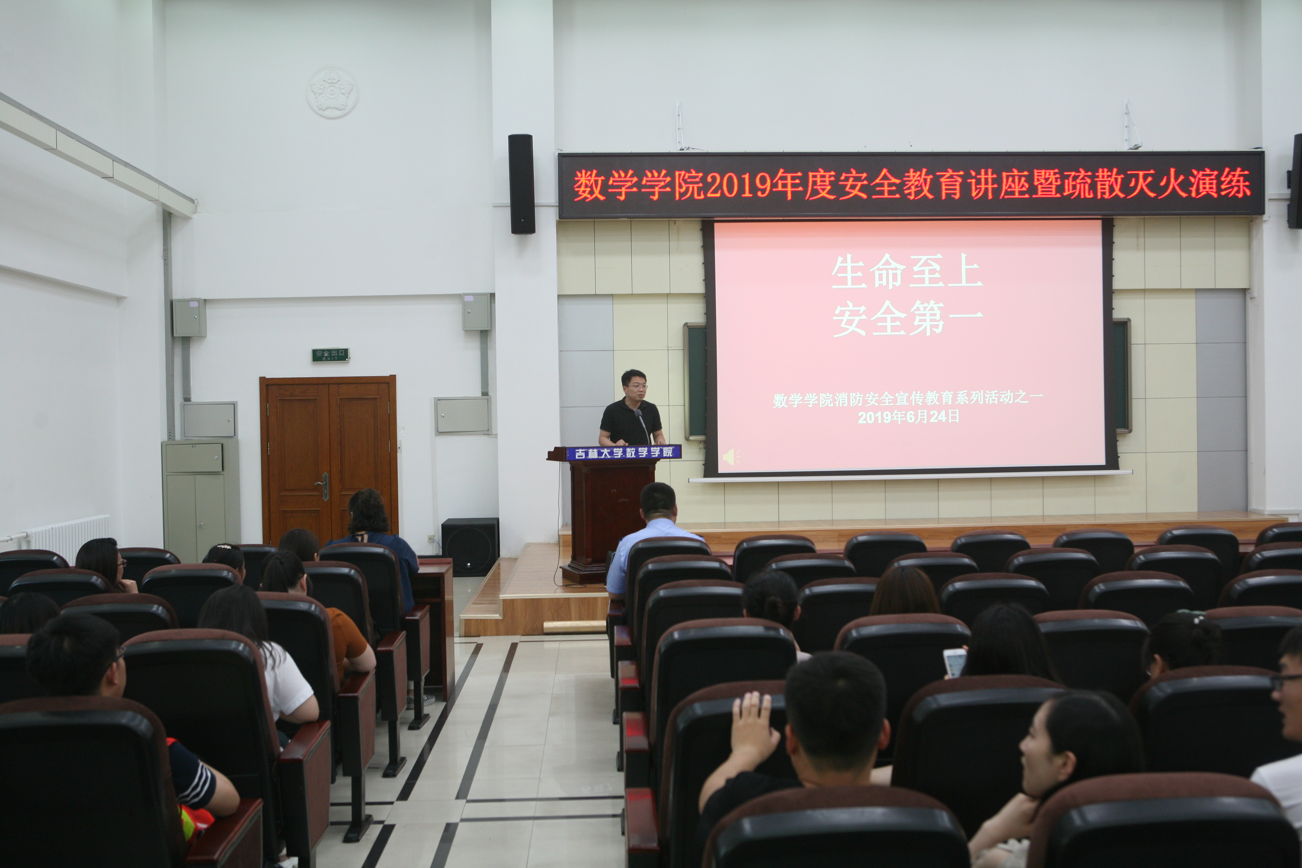 首先,在数学楼二楼报告厅进行安全知识培训讲座。保卫处消防科董立明老师通过一些真实具体的案例深入浅出地向现场师生宣讲消防安全知识,并通过观看消防安全系列宣传片更加直观地了解和学习了常规的火情处置方式、火灾自救逃生方法等。