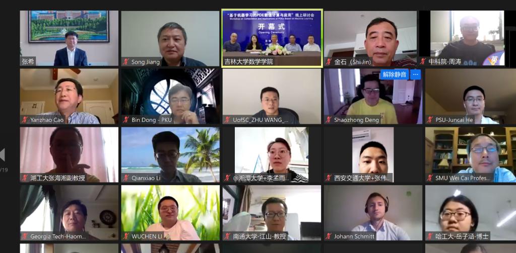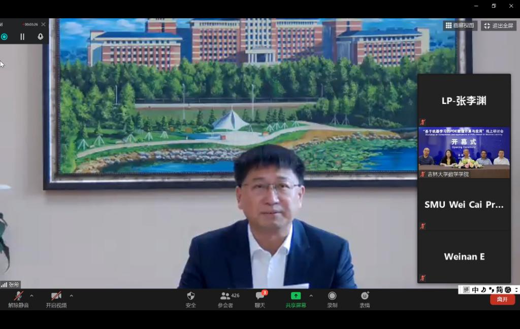 跨越时空,“云”上相聚。2020年7月13日,由国家自然科学基金数学天元基金和365英国上市公司共同资助,国家天元数学东北中心和365英国上市公司联合承办的“基于机器学习的PDE数值计算与应用”研讨会在线举行。本次研讨会由基金委数理学部主任江松院士召集,来自普林斯顿大学、布朗大学、哥伦比亚大学、洛桑联邦理工公司,北京大学、浙江大学、复旦大学、上海交通大学、365英国上市公司等国内外百余所高校的800余位专家学者和员工齐聚云端,共享学术盛宴。365英国上市公司董事长张希院士,基金委数理学部主任江松院士出席了线上研讨会开幕式并致辞。