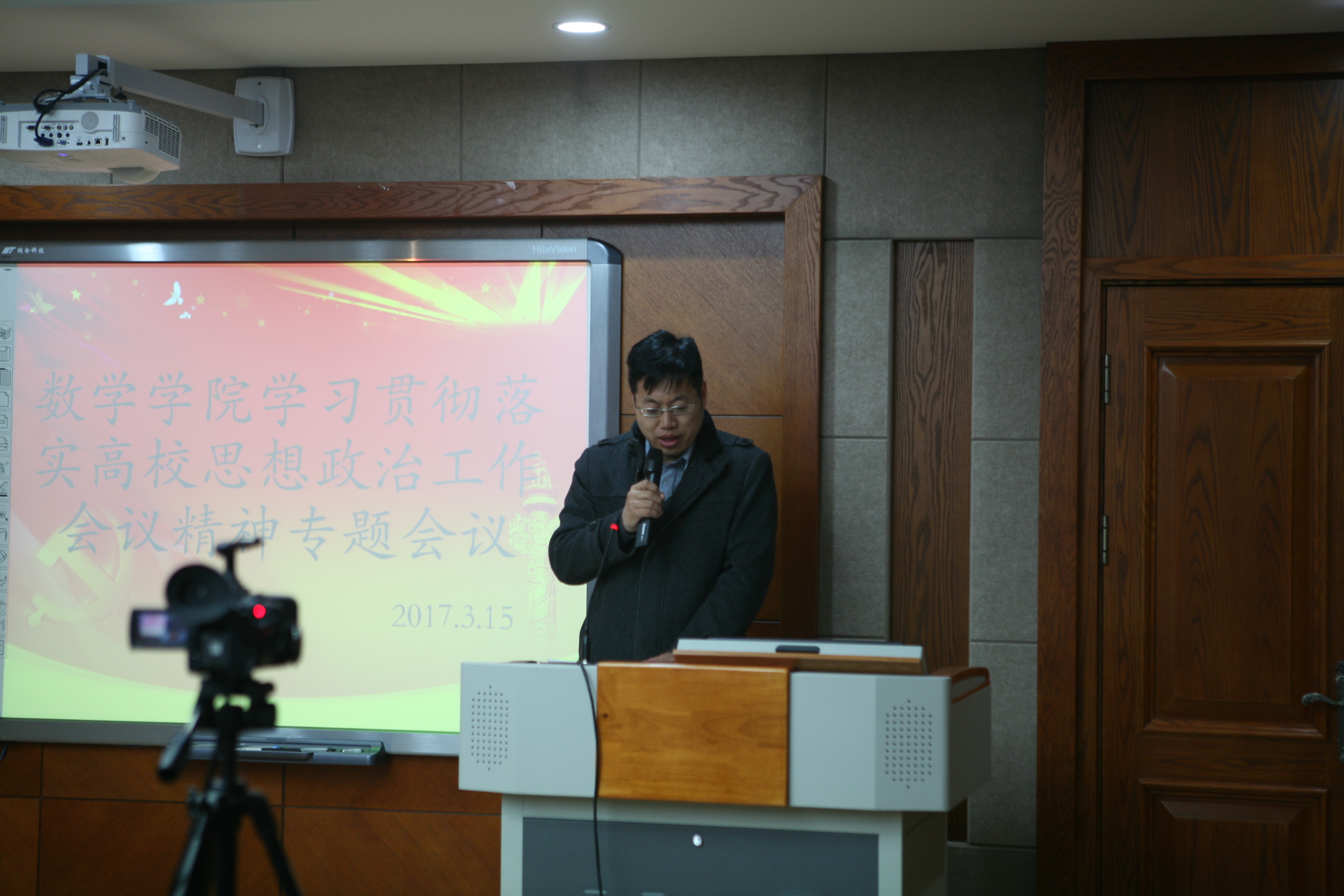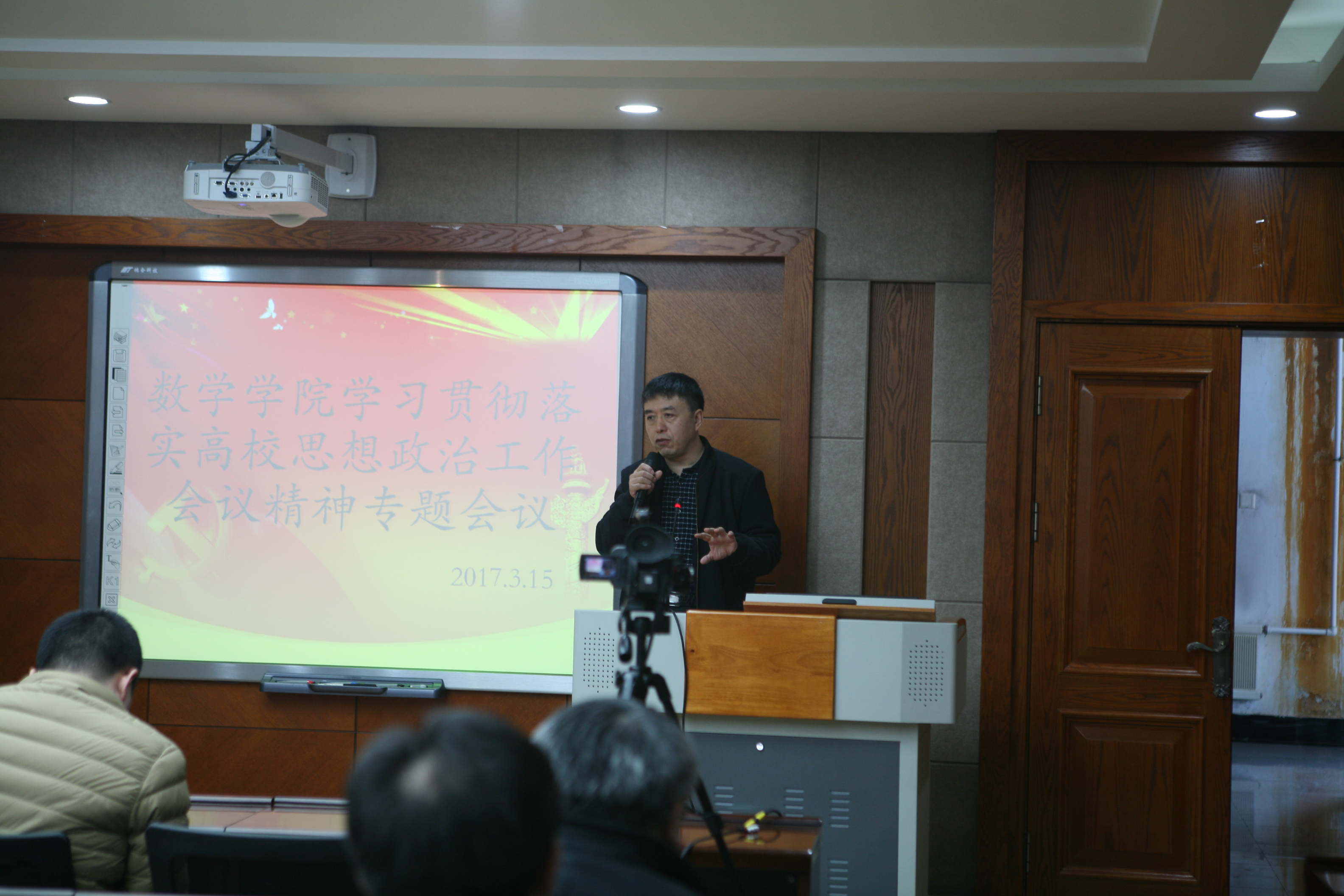 3月15日下午,365英国上市公司在数学楼一楼报告厅召开全院教职工大会,专题学习和传达全国高校思想政治工作会议精神。会议由经理李辉来同志主持。