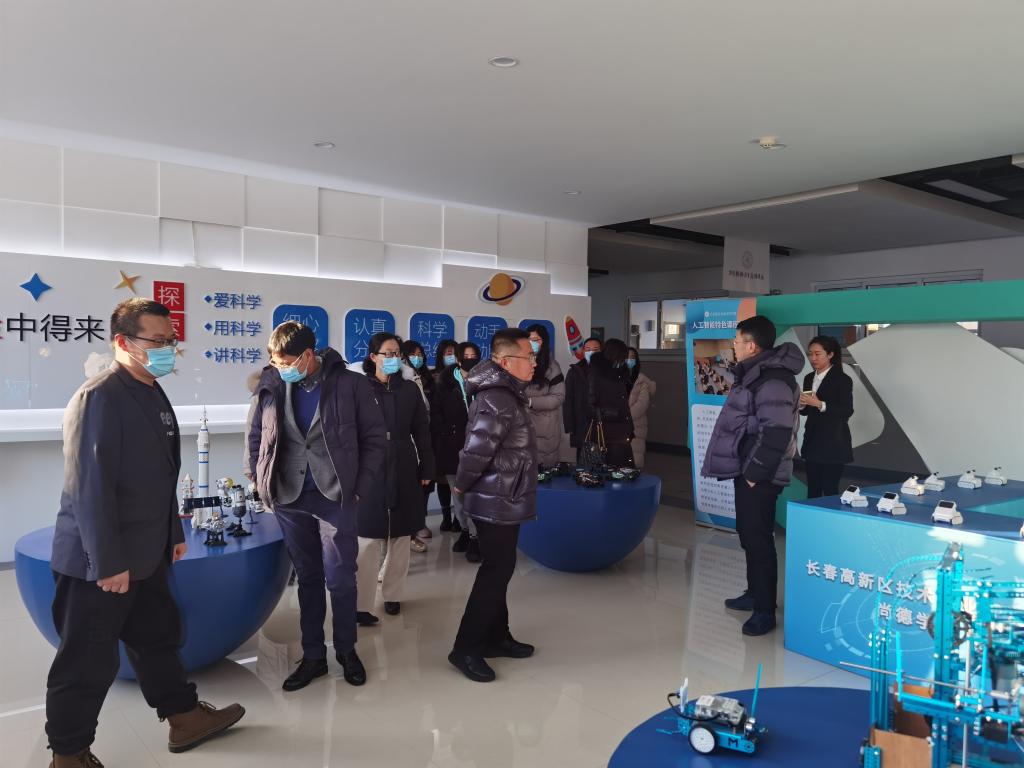 在王恒董事长的带领下,公司师生参观了吉大尚德公司的地板冰壶教室、仿真冰教室及冰雪文化长廊等,了解了公司的冰雪特色课程。通过参观“馆校共建科技体验区”,前来参观的老师同学们都对尚德公司的校园环境、特色课程、创新教学等方面赞叹不已。