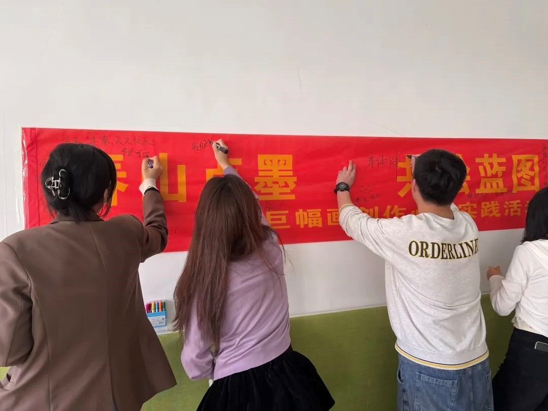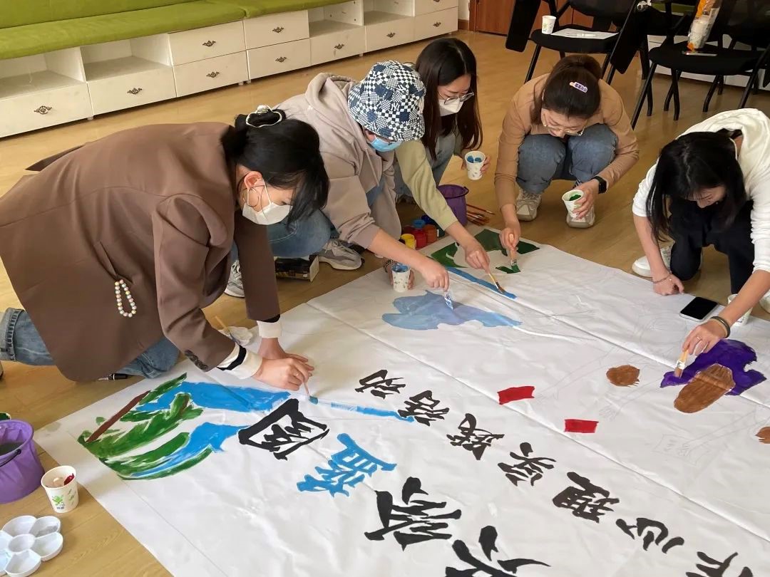 活动开始,主持人先介绍流程,活跃气氛,引导分享自己的故事与梦想,而后由同学们互帮互助,共同协作完成作画过程。在巨幅画绘制的过程中,锻炼了同学们的色彩搭配能力、审美能力以及动手实操能力,让同学们的综合素质得以全面发展。大家共同绘制同一幅画,培养了同学们的团结协作以及与人交往的能力。在绘制的过程中能够全方位的沉浸在活动中,使节奏得以放慢,心灵得到洗涤,压力得以缓解。