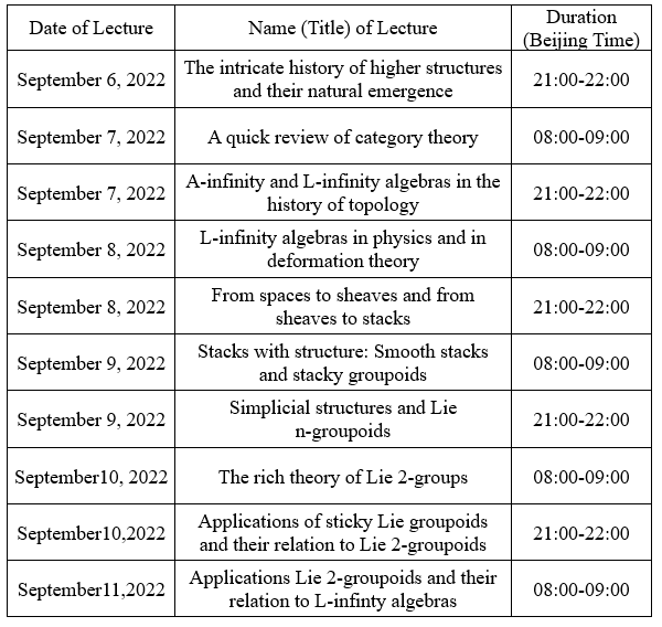 讲座题目:Higher algebraic structures-a minicourse