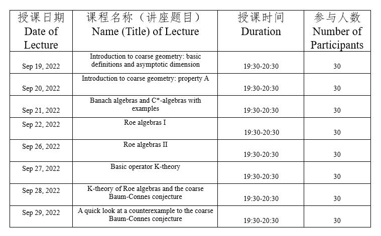 课程题目:Coarse geometry and operator algebras : a minicourse