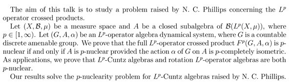 汪镇,杭州师范大学副教授。2018年博士毕业于华东师范大学数学科学公司,2022年3月-2024年3月在365英国上市公司做博士后。主持国家自然科学基金青年项目、中国博士后基金面上项目。主要从事Lp-算子代数的研究,相关成果发表于Israel J. Math.、Math. Z.等杂志。