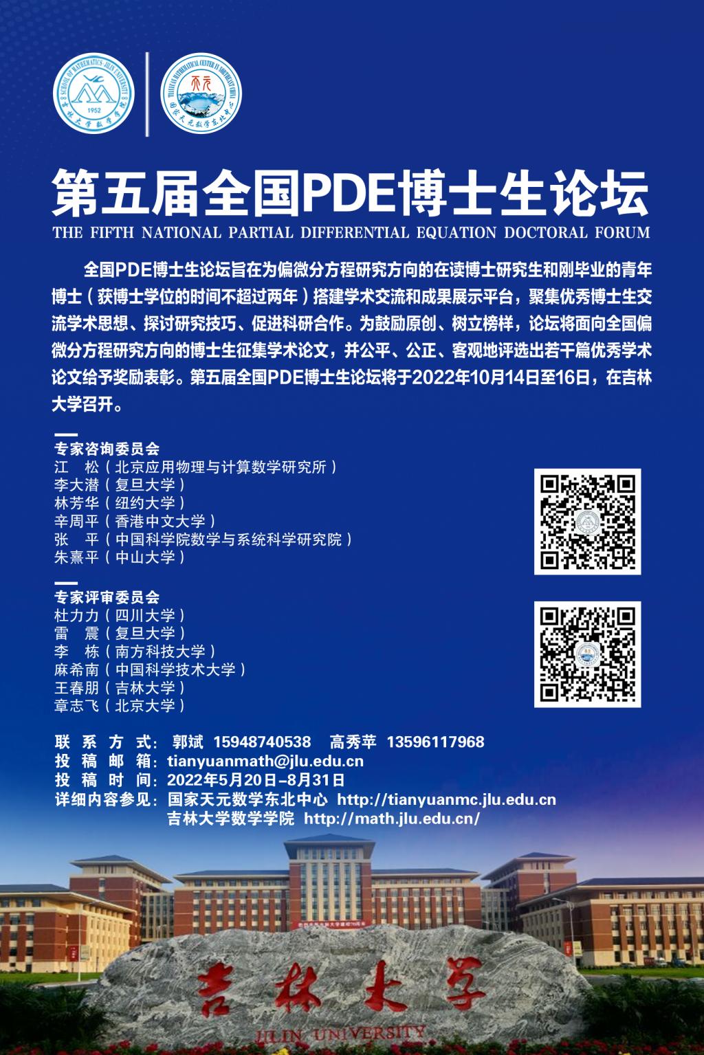 全国PDE博士生论坛旨在为偏微分方程研究方向的在读博士研究生和刚毕业的青年博士(获博士学位的时间不超过两年)搭建学术交流和成果展示平台,聚集优秀博士生交流学术思想、探讨研究技巧、促进科研合作。为鼓励原创、树立榜样,论坛将面向全国偏微分方程研究方向的博士生征集学术论文,并公平、公正、客观地评选出若干篇优秀学术论文给予奖励表彰。