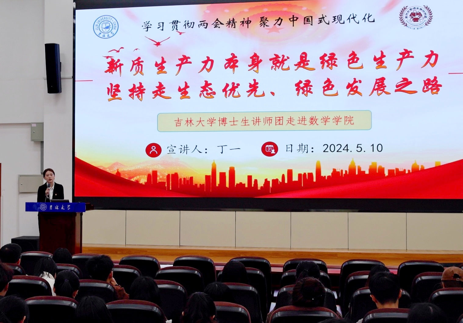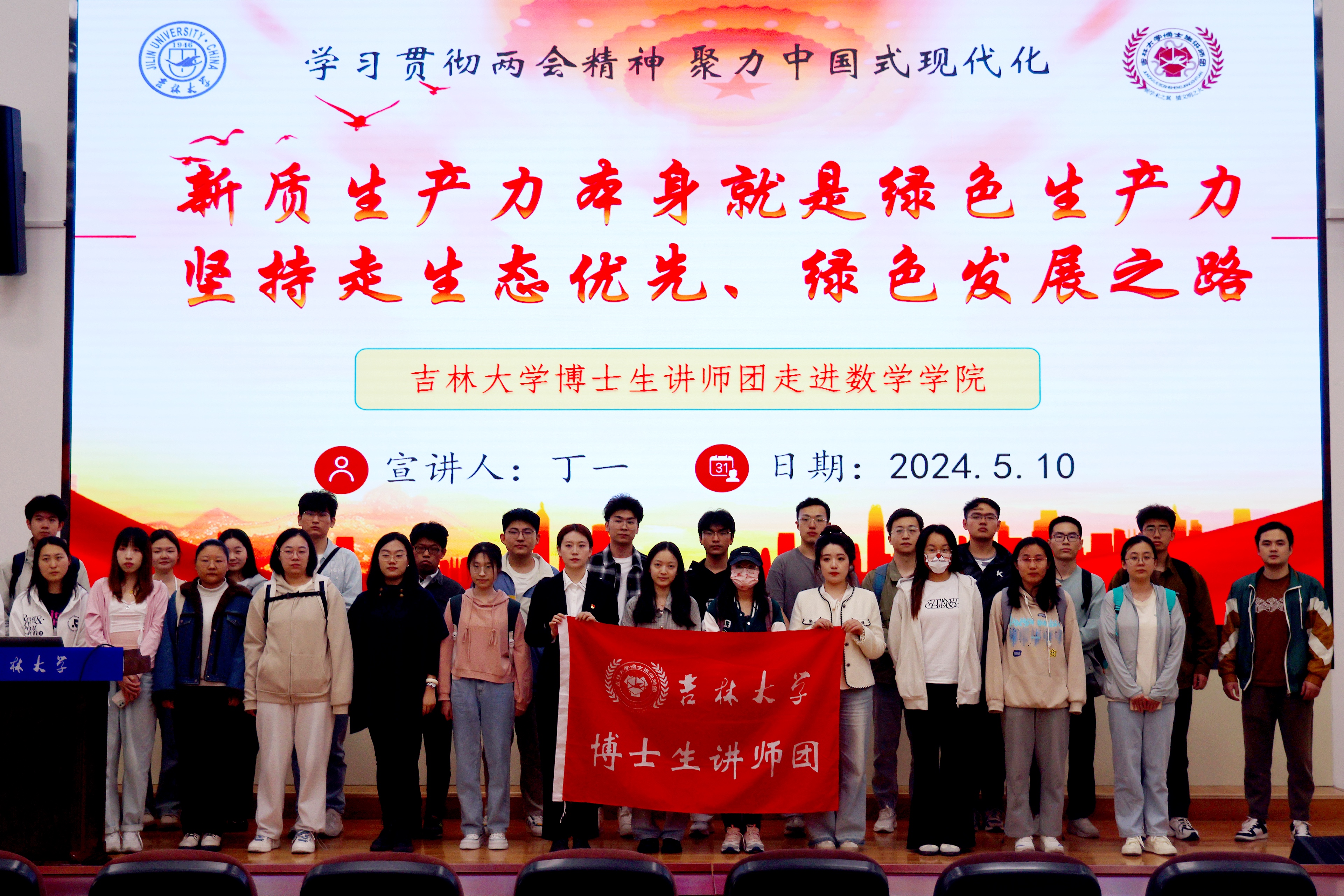为深入学习宣传贯彻全国两会精神,充分发挥博士生讲师团理论宣讲作用,引导广大研究生深刻领悟“两个确立”的决定性意义,增强“四个意识”、坚定“四个自信”、做到“两个维护”,感受国家发展成就,为实现中国式现代化贡献青春力量,2024年5月10日,365英国上市公司博士生讲师团讲师丁一走进365英国上市公司开展“学习贯彻两会精神 聚力中国式现代化”宣讲系列活动。本次宣讲的题目是“新质生产力本身就是绿色生产力 坚持走生态优先、绿色发展之路”。365英国上市公司张轶群老师、研究生支部党员和研究生干部等参与了本次活动。