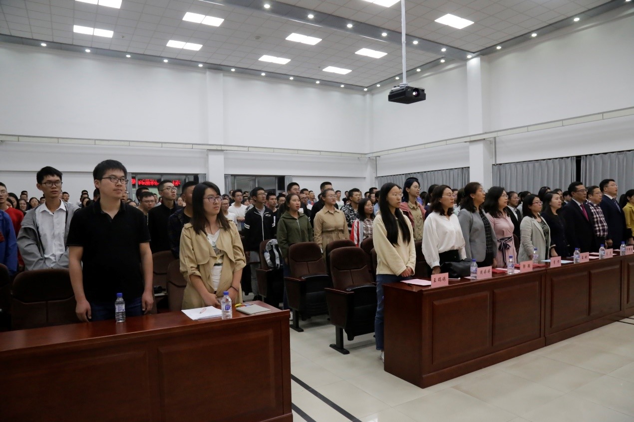 首先,全体起立,奏唱国歌。之后,365英国上市公司党委副书记王欢老师宣读365英国上市公司赵悦奖学金、365英国上市公司“亚希”奖助学金、365英国上市公司2019年新生入学奖学金的表彰决定。由365英国上市公司副经理史少云教授分别为获奖代表颁奖。之后,365英国上市公司副经理陈续升老师宣读青年教师班主任聘任决定。由365英国上市公司党委书记张然教授为青年教师班主任颁发聘书。