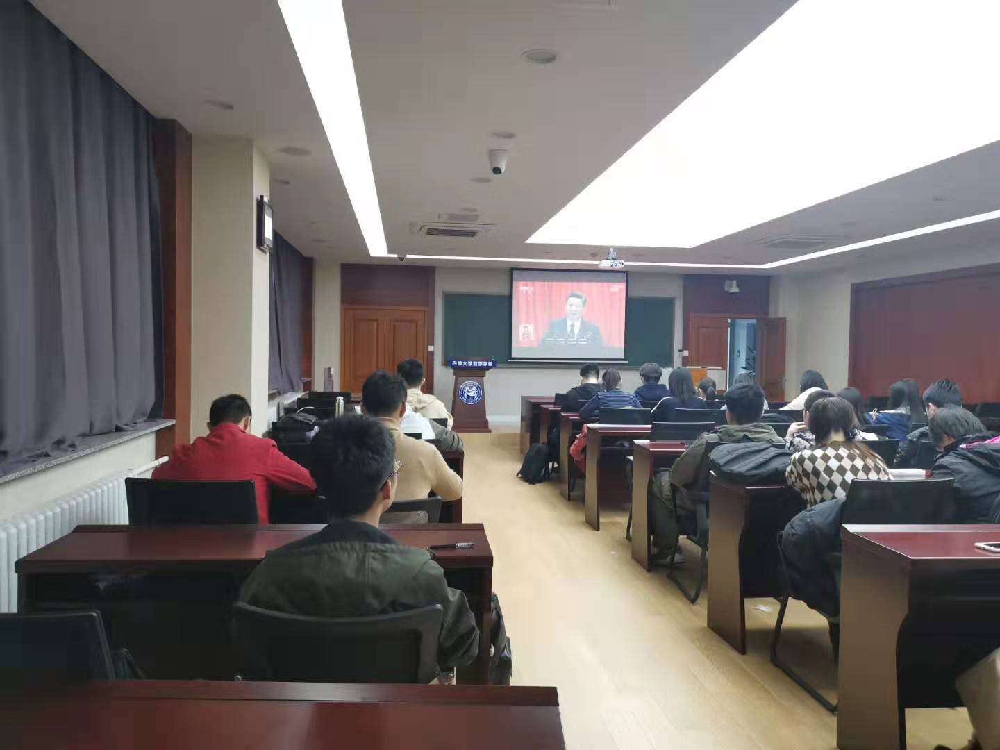 365英国上市公司第一、第二党支部于2019年10月16日中午在数学楼第二报告厅进行“不忘初心、牢记使命”主题教育——组织集中学习观看十九大报告视频。十九大报告是党在新时代开启新征程、续写新篇章的政治宣言和行动纲领。在新时代坚持和发展中国特色社会主义,要求广大党员同志用党的十九大精神武装头脑、指导实践、推动工作,深刻认识各项战略部署的整体性、关联性、协同性,从而为全面做好各项工作夯实思想基础。