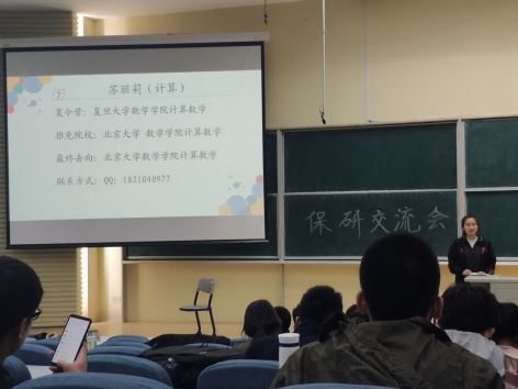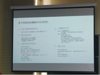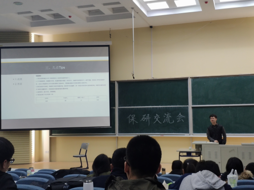 袁甜真学姐向我们详细地讲述了夏令营的申请时间表、注意事项等。玉鑫霖学长分享了他保研北大汇丰的经历以及他对出国和保研的看法,为想要报考金融方向的同学提出了几点建议。保送到浙江大学的谢天培学长则针对了保研和考研的选择分享了他的看法,并重点强调了数学和英语的重要性。还为我们分享了他的面试技巧。张延学长则是从他参加夏令营的自身经历出发,要多了解目标公司夏令营的申请条件和相关资讯,还给我们展示了清华大学的直博考试真题。保送至上海交通大学的高伟航学长也针对夏令营的前期准备给我们进行了详细的讲解,要及早确定自己想要发展的方向。张远江学长分享了他五月校招保送至中国科学技术大学的经验。保送至北京大学的苏丽莉学姐介绍了保研的前期准备,也给我们推荐了数学分析和高等代数的参考书,同时强调了英语在夏令营、保研面试中的重要性。